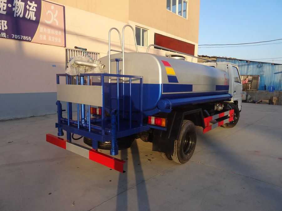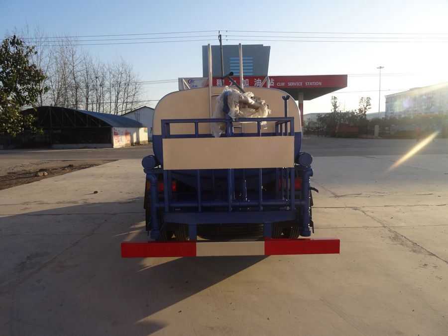 改裝配置:罐體采用4mm厚武鋼專用容積板制作,實際容積5立方,罐內隔板具有防波作用,以減低汽車行駛時罐體液體的沖擊。泵 進泵出,消防栓接口,前沖、后灑、側噴、后工作平臺帶綠化水炮,垂直吸程≧7米,灑水寬度≧14-16米,射程≧20-25米,引水時 間<5min,流量90m3/h。自流閥、濾網、帶自吸自排功能。兩根等長輸水管,金屬漆,其余標配。可加裝藥盤、氣動控制閥、噴藥設備、非車帶泵動力等。