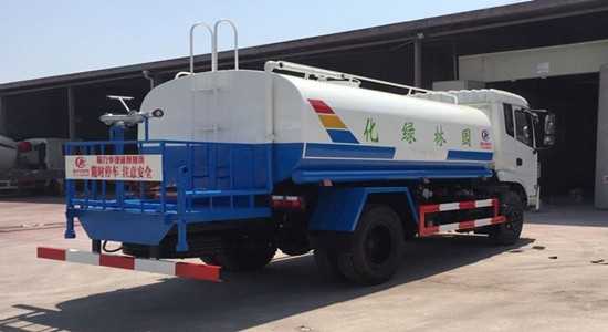 改裝配置:罐體采用4MM厚武鋼專用容積板制作,容積12立方,灑水車前沖(噴)后灑,帶側噴,罐體后帶工作平臺,平臺上安裝綠化灑水炮,灑水炮可全方位旋轉,可連續調成直沖狀、大雨、小雨、毛毛雨,帶安全護欄,配備全國質量評比第一名的大功率專用灑水泵,泵可自吸自排,安裝過濾網,帶消防接口,可通過消防栓進水,帶自流閥,隨車選裝20米綠化卷盤,可噴灑農藥。