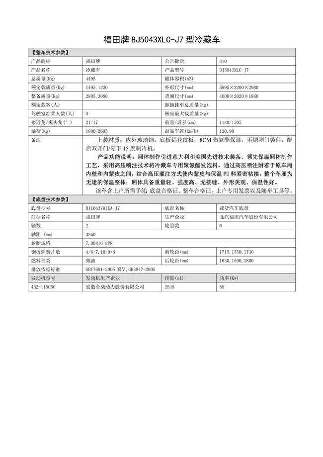 BJ5043XLC-J7 型 4.2米冷藏車