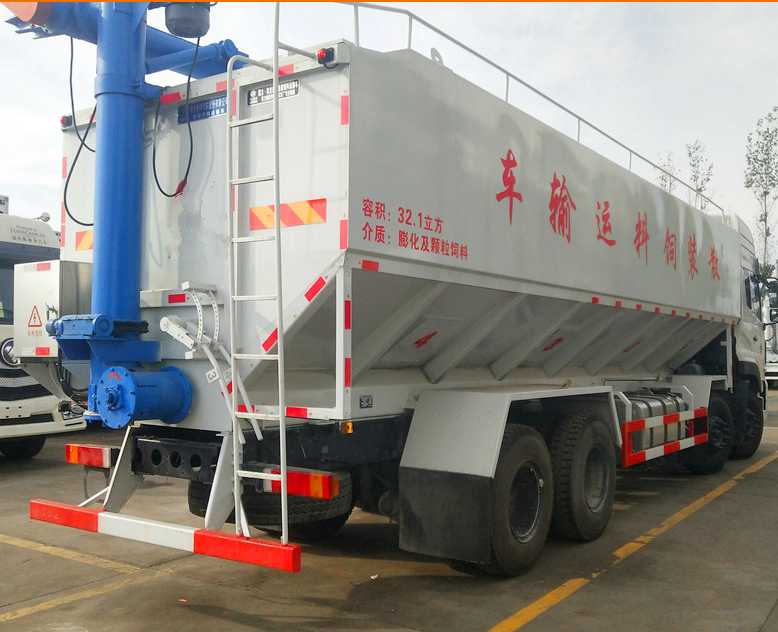 散裝飼料車,又名散裝飼料運輸車,飼料運輸車。結構簡單、性能可靠、輸送量大、操控方便、機動性強、對物料無污染等特點,廣泛應用于各大中小型養殖企業的飼料的運輸。